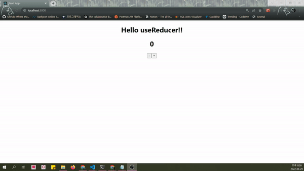 실제로 useReducer 함수를 사용해서 카운터를 만들어보도록 하자.